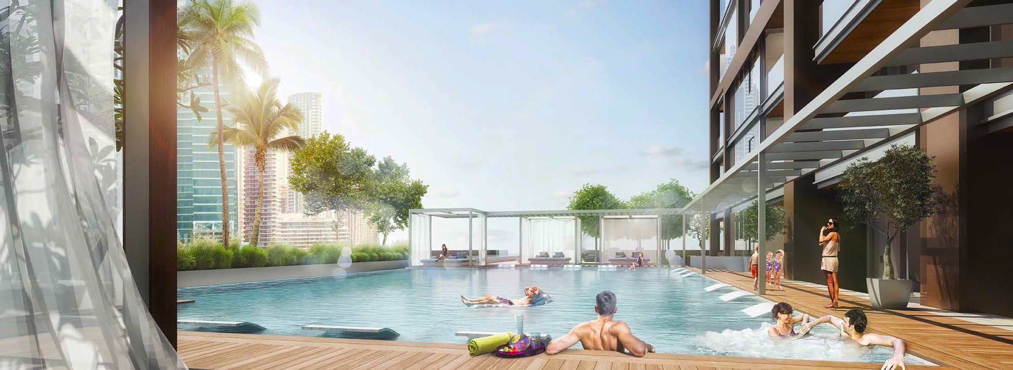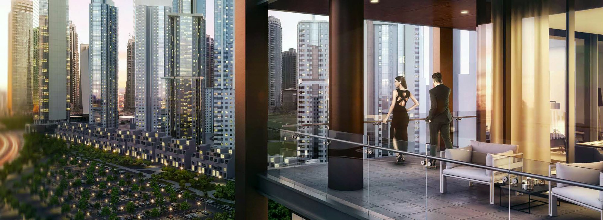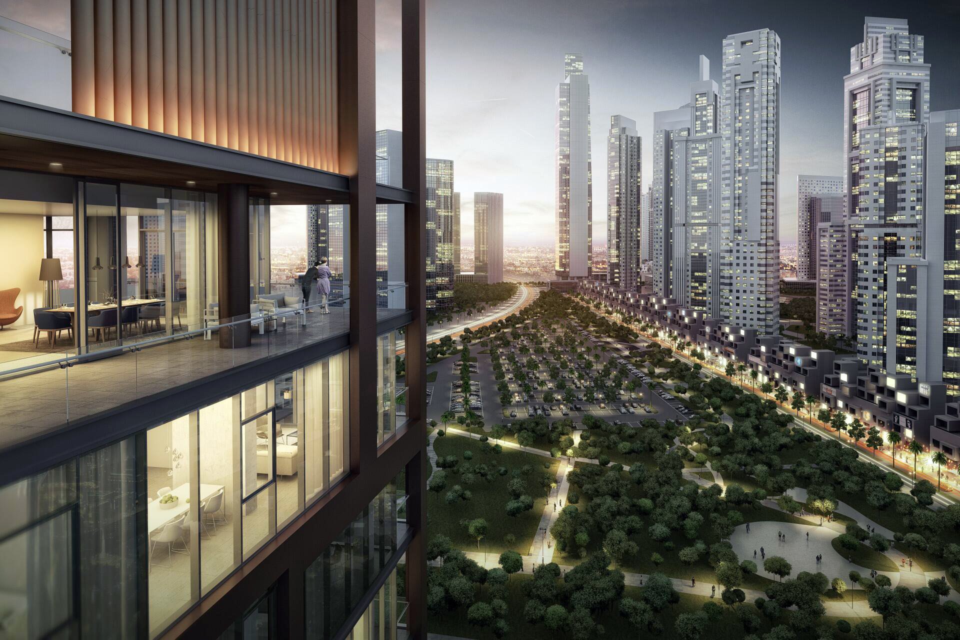 The surroundings offer everything needed for a comfortable and fulfilling lifestyle, including supermarkets, pharmacies, cafes, beauty salons, fitness centres, and prestigious schools and nurseries. Culture and entertainment enthusiasts will enjoy the proximity to Dubai Opera, The Dubai Fountain, and Dubai Mall, home to an aquarium, an ice rink, and world-class restaurants. The complex's convenient location allows easy access to Dubai International Airport in about 20 minutes, and Al Maktoum International Airport in 40–45 minutes.