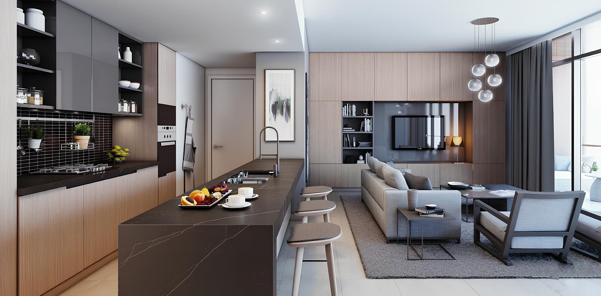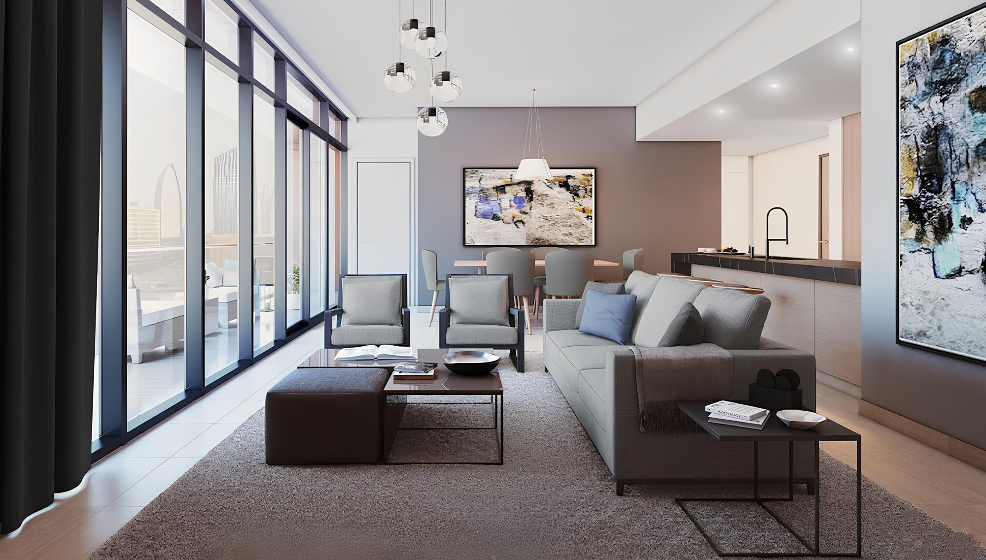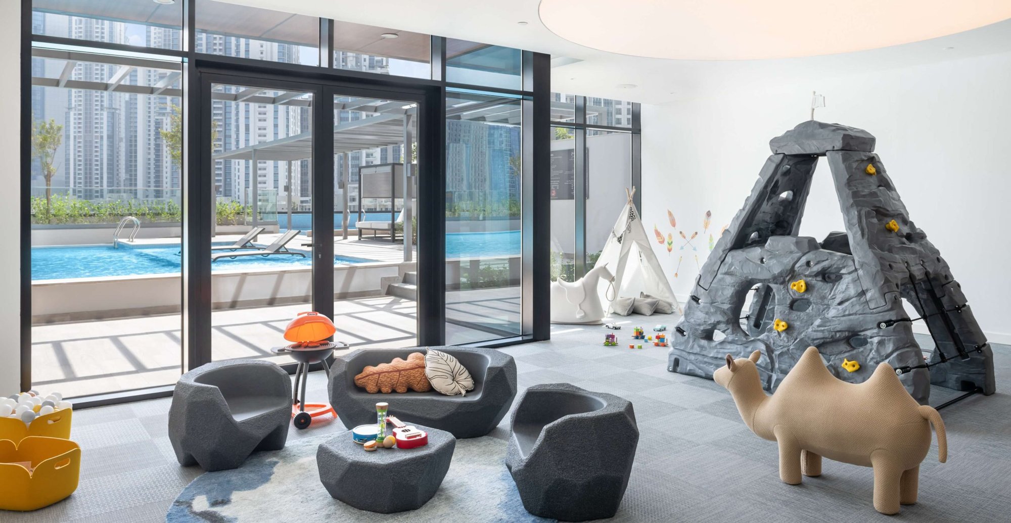 The surroundings offer everything needed for a comfortable and fulfilling lifestyle, including supermarkets, pharmacies, cafes, beauty salons, fitness centres, and prestigious schools and nurseries. Culture and entertainment enthusiasts will enjoy the proximity to Dubai Opera, The Dubai Fountain, and Dubai Mall, home to an aquarium, an ice rink, and world-class restaurants. The complex's convenient location allows easy access to Dubai International Airport in about 20 minutes, and Al Maktoum International Airport in 40–45 minutes.