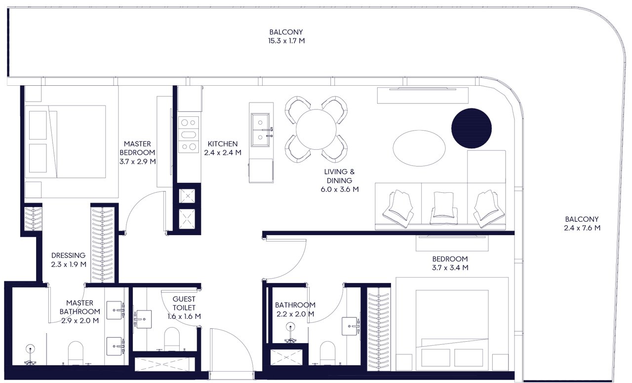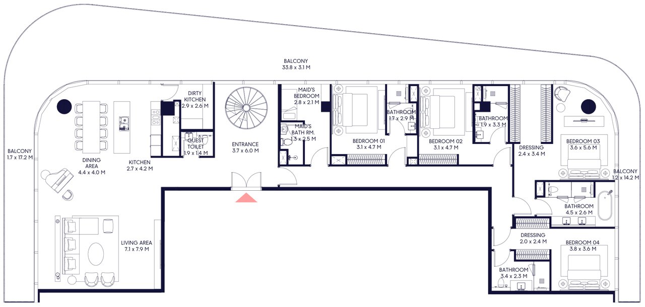 Downtown Dubai is the vibrant heart of the metropolis, where futuristic skyscrapers harmoniously blend with a well-designed urban environment, creating a comfortable space for living, business, and leisure. It is home to Dubai's iconic symbols, including the world-famous Burj Khalifa. Residents and guests of the area enjoy the architectural landmarks, well-maintained parks, such as Burj Park, and a scenic promenade with The Dubai Fountain, famous for evening shows.