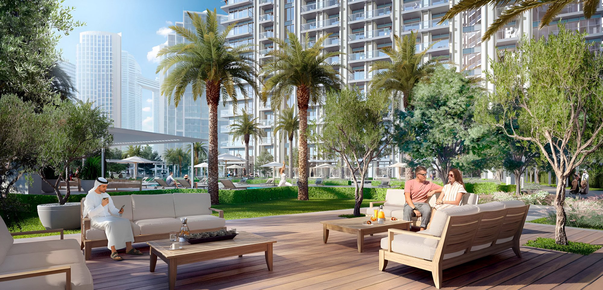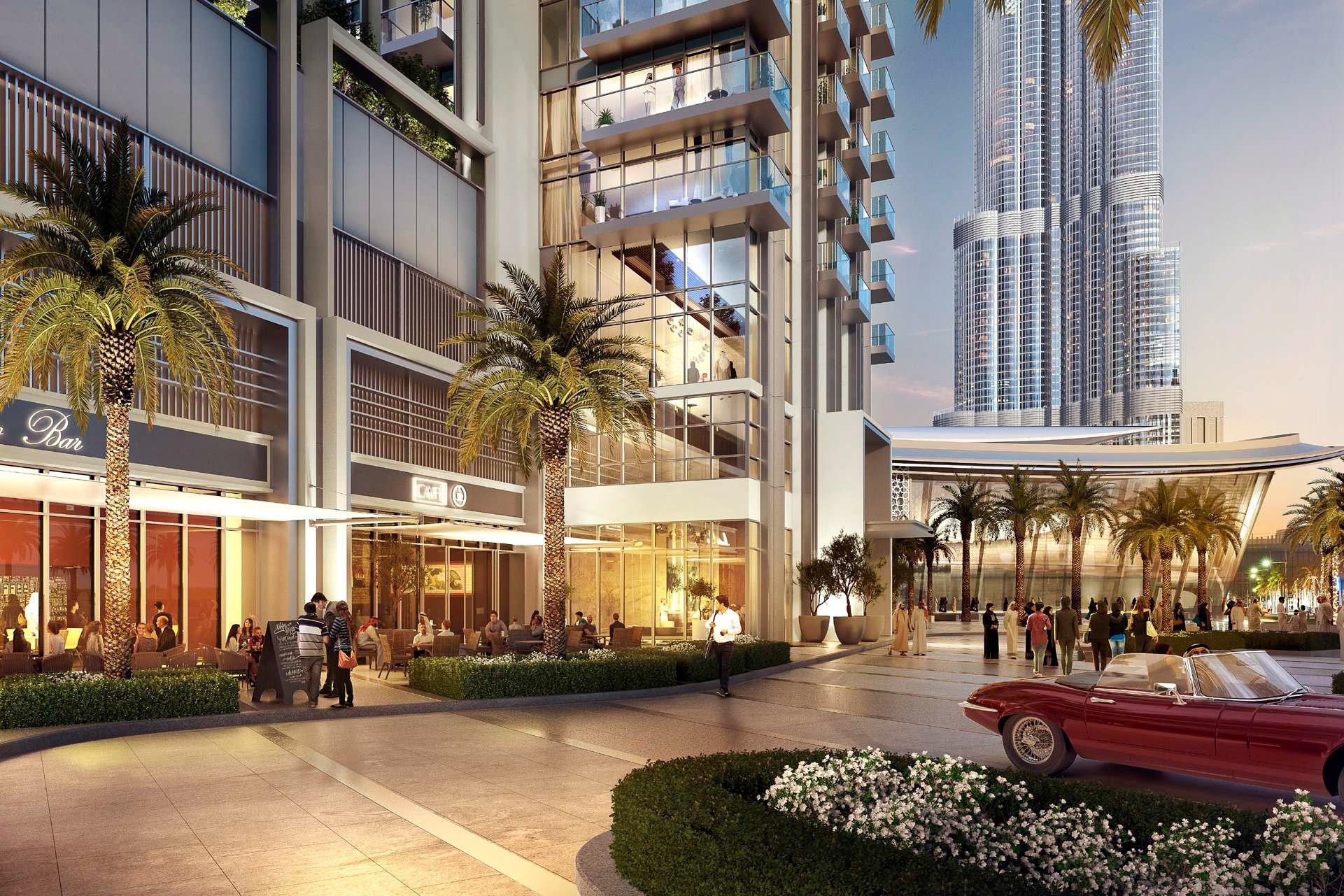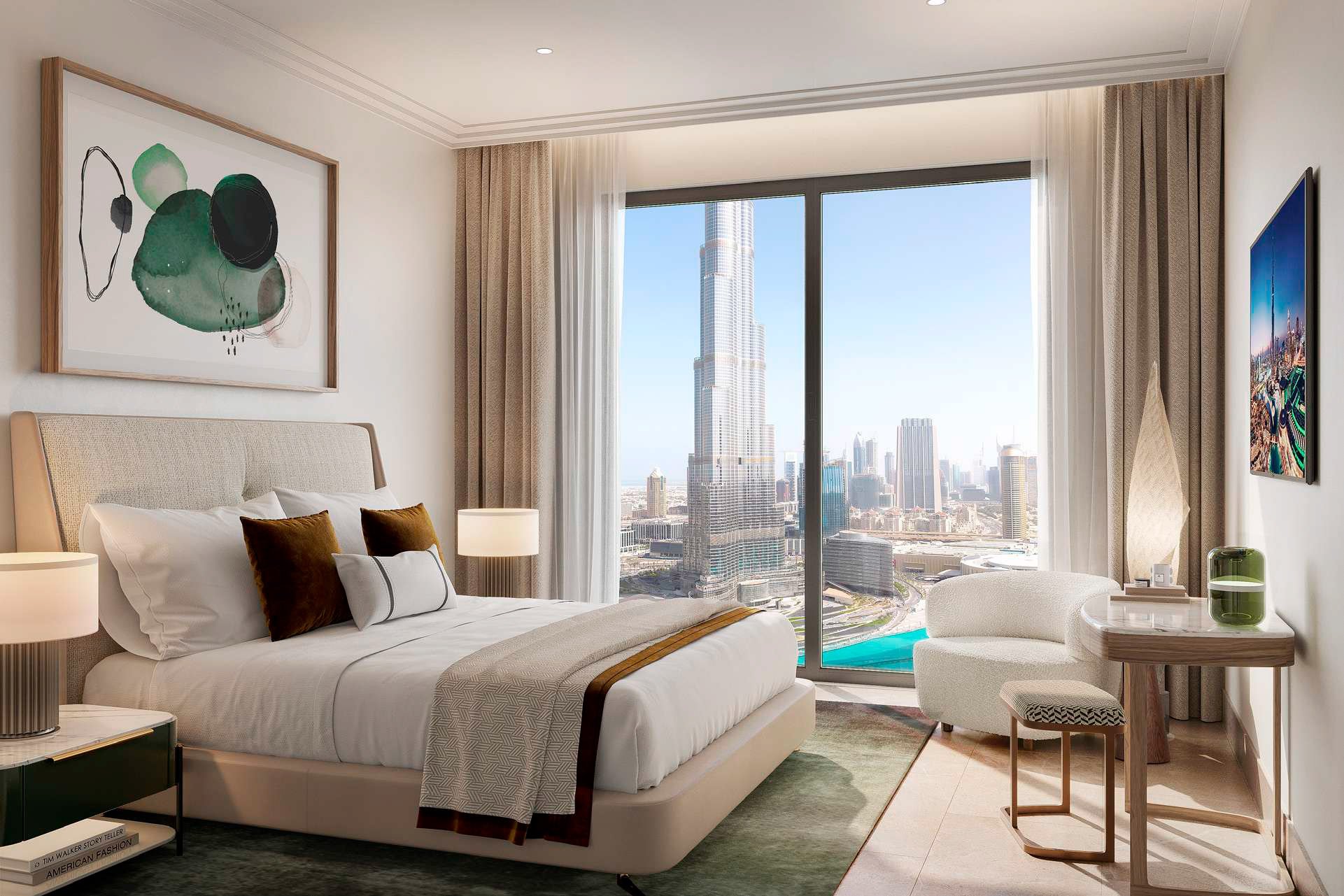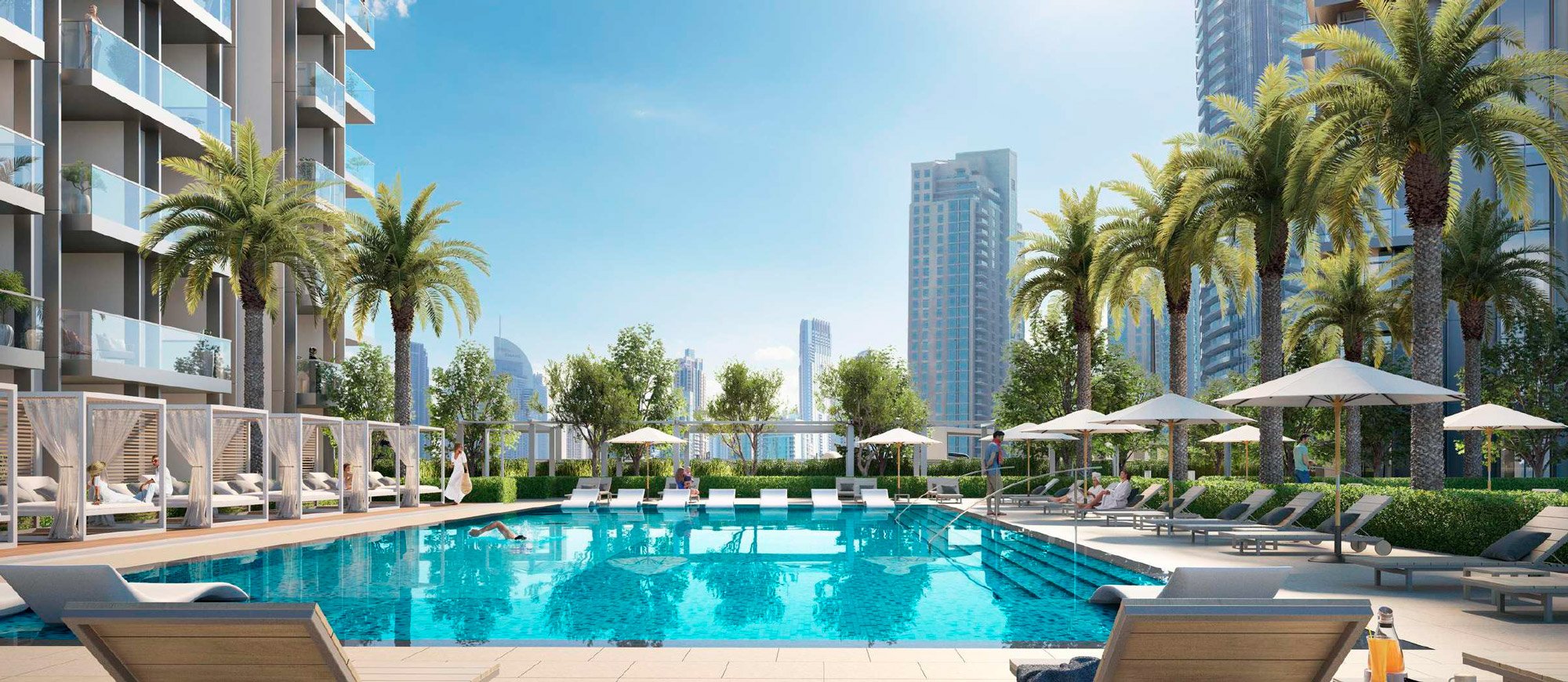 Within walking distance, residents will find Spinneys and Carrefour supermarkets, upscale cafes, pharmacies, salons, and fitness clubs. Families with children will enjoy prestigious educational institutions, including Blossom Nursery and GEMS Wellington Primary School. Cultural enthusiasts will appreciate Dubai Opera, The Dubai Fountain, and the region's largest shopping and entertainment centre, Dubai Mall, all within a 10-minute walk. Dubai International Airport is about 20 minutes away, while Al Maktoum International Airport is approximately 40–45 minutes away, so the location is particularly convenient for frequent travellers.